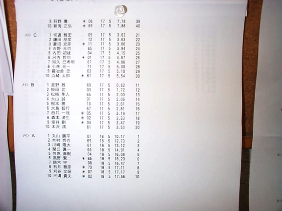 予選結果。上の方の皆様。